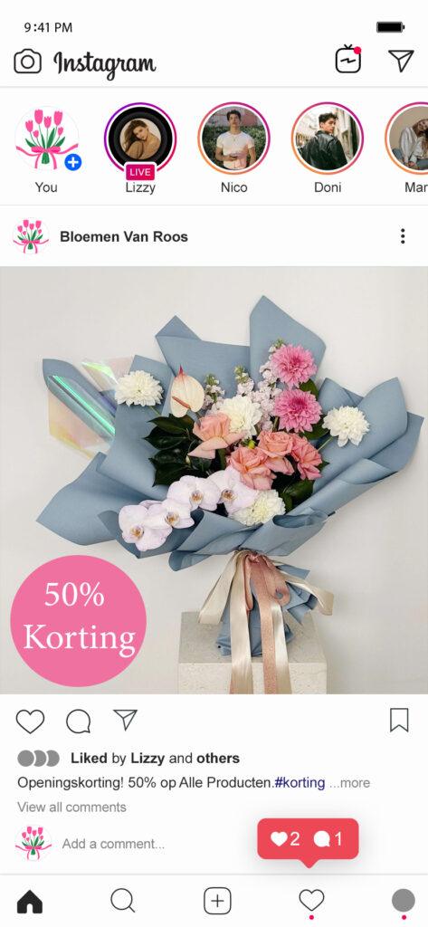 In this exercise we had to make an insta post and digital abri that matched Roos Tennapel’s request. I used colors that match her personality, the color pink stands for a loving and kind individual, which in my opinion suits Roos very well.